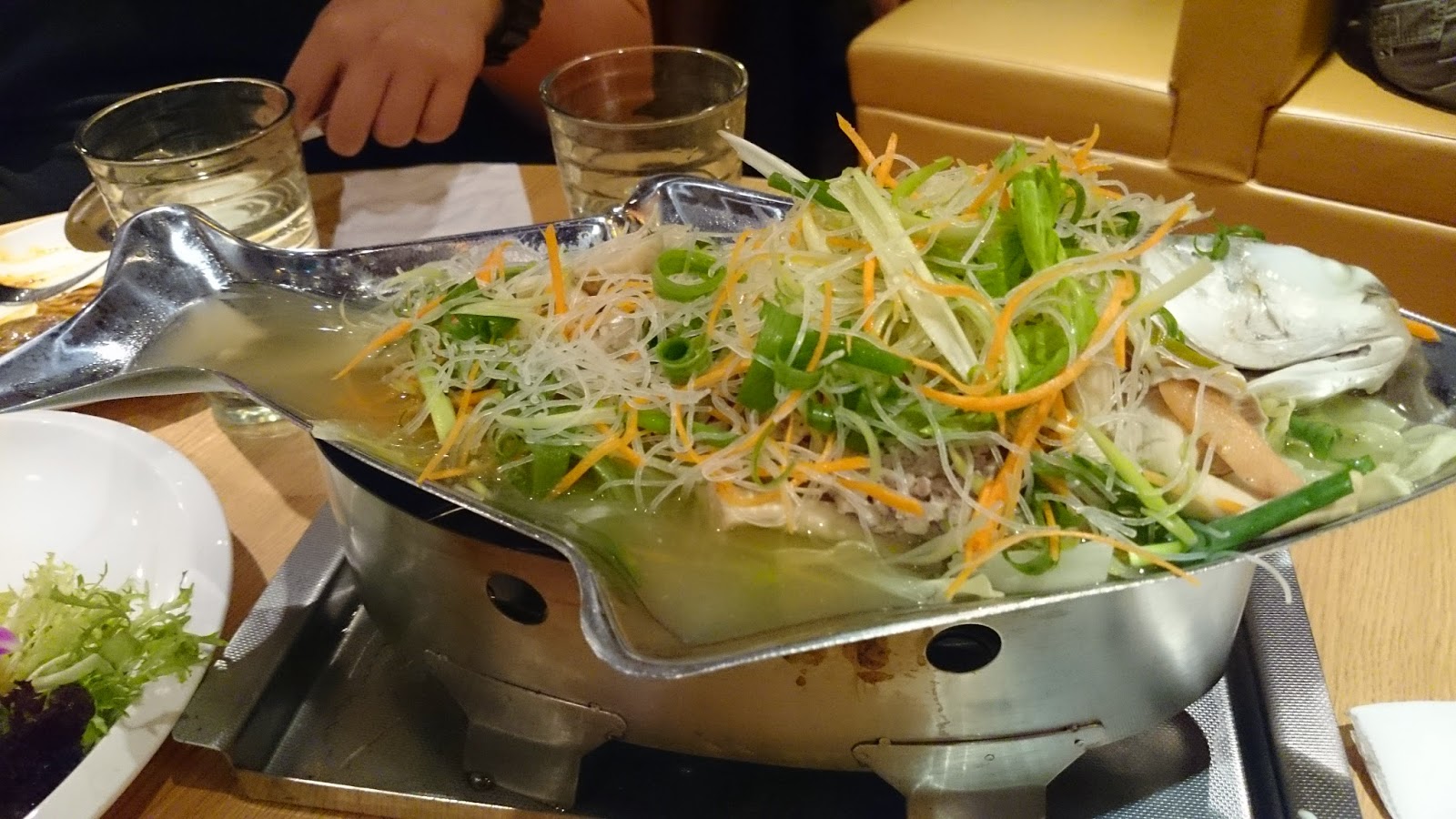 魚身一直被微酸的配菜和湯汁以明爐煮著,一開始吃時還可以,但吃慢了魚質便開始變老了。
