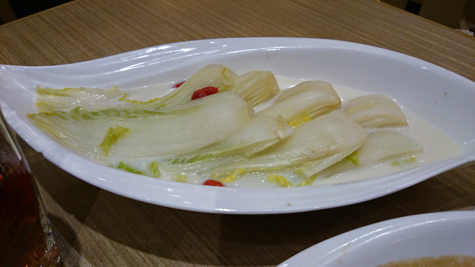 吃得多肉會有點膩,利小館提供娃娃菜、菜心和小唐菜選擇,全部都可以泡豆漿、泡蕃茄湯,或是清炒,這天選擇了較少吃到的豆漿泡。所謂豆漿泡,其實吃起來不是想像中的豆味濃郁,反而有點像平日吃到的上湯泡。