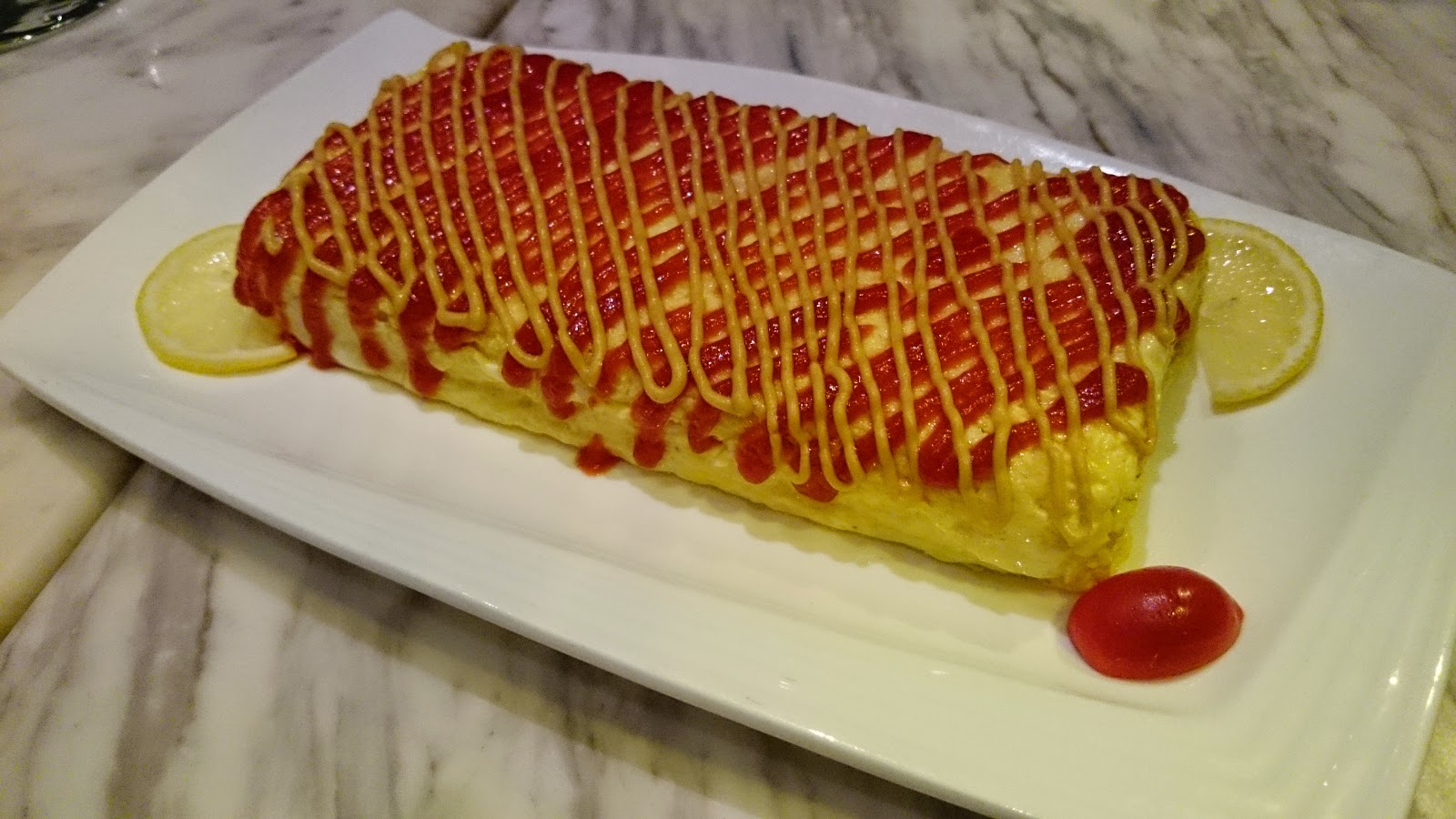 芝士蛋卷上唧滿茄油和千島醬,長度跟麵包店內的蛋卷差不多,看來平平無奇,可是一切開…