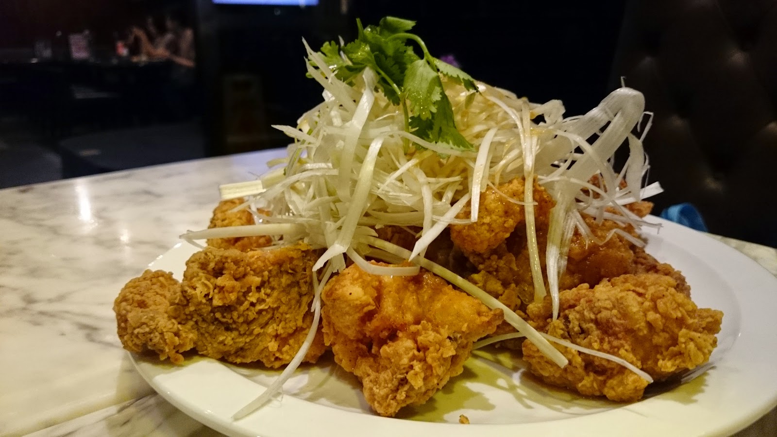 先說說炸雞,雞是剛剛炸起的,外皮香脆,未經烹煮過的香蔥剛好減卻了炸雞的油膩感。或許是整隻雞各部位都一次過拿去炸,吃起來有些雞件較嫩滑多汁,但雞胸等部份因肉質本來已不嫩滑,炸後吃起來那對比更嚴重。