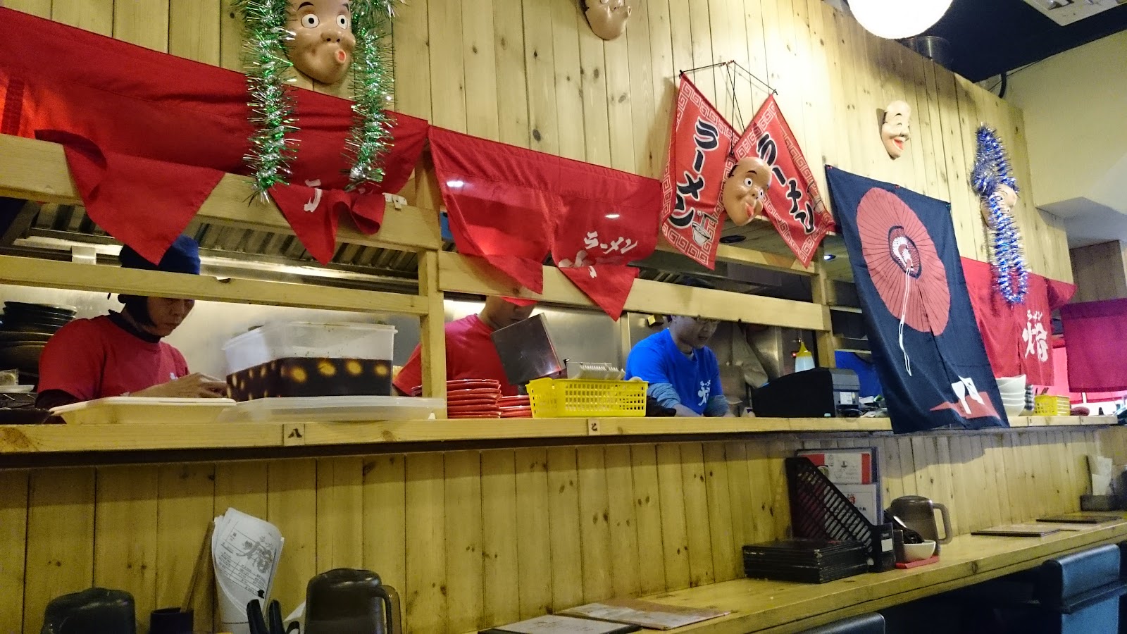 一進店,裝修一如其他拉麵店,都是木材為主。掛上紅、藍布飾,不期然令我想到太鼓。