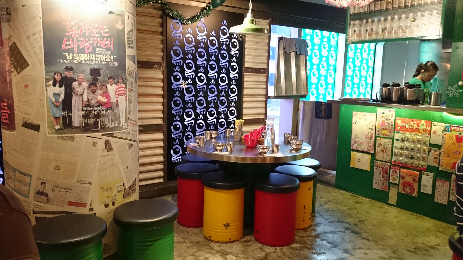 餐廳內貼了不少韓國電影海報,營造韓國舊式餐廳的氣氛。