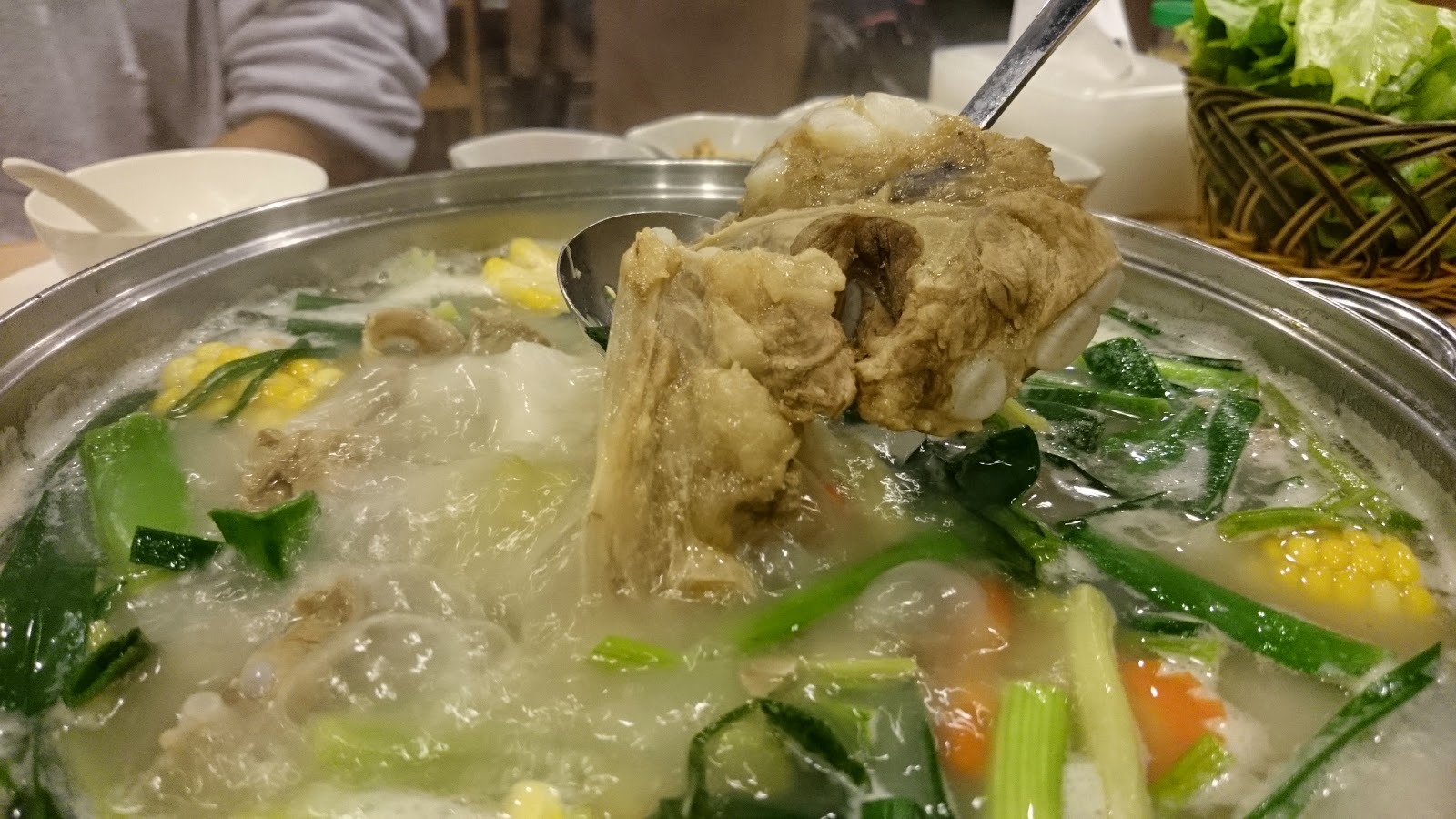 十分足料的豬骨煲,內裡有大量粟米、芹菜等等。你可能會說:車~不嬲打邊爐都大把嫁啦!
