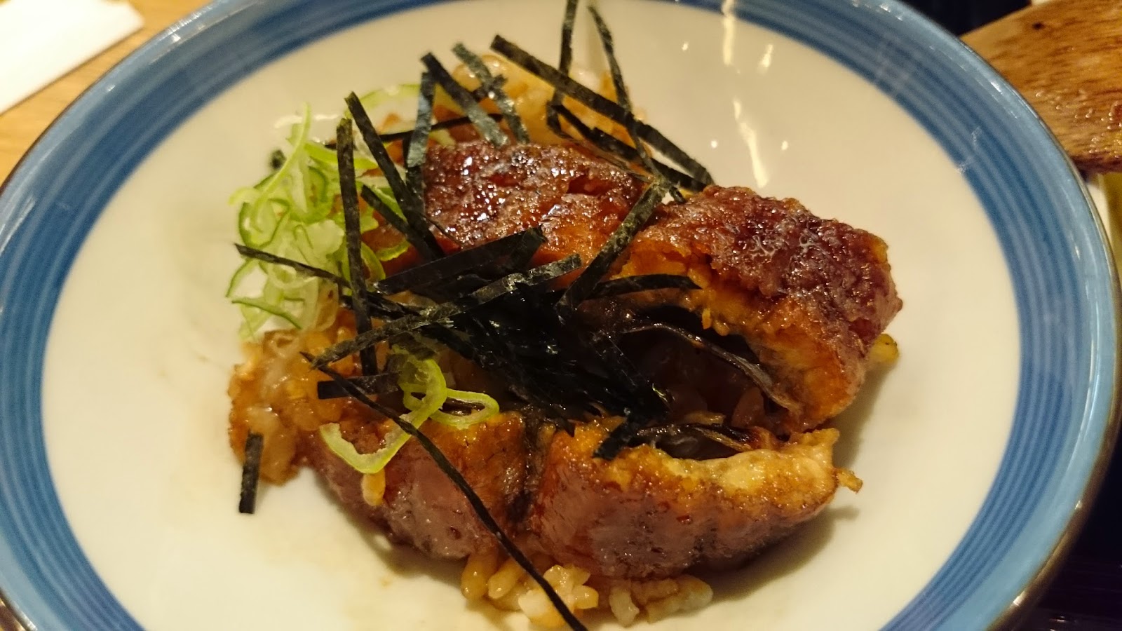 一飯三吃,一是原味,或可加花椒粉;二是加蔥和紫菜;三是加蔥和紫菜後,再加wasabi和清汁。三種食法我覺得原味最好吃。