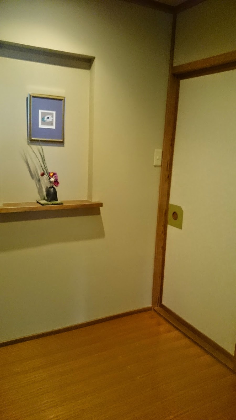 打開房門,玄關的空間也不少,雖然外出的鞋已在旅館的玄關脫掉,但來到這裡仍是要把旅館提供的拖鞋脫掉,以免弄污裡面。