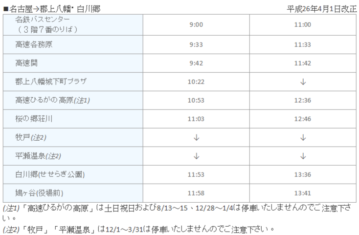 「岐阜巴士」即有由名古屋開往白川鄉的巴士,車程大約3小時。