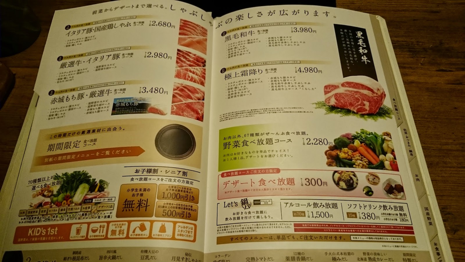 肉類方面,我們選了¥3980一位的黑毛和牛餐,除了較貴的極上霜降牛肉外,其他的牛、豬、雞肉都能選,當然蔬菜類每個餐都能任點任食的。