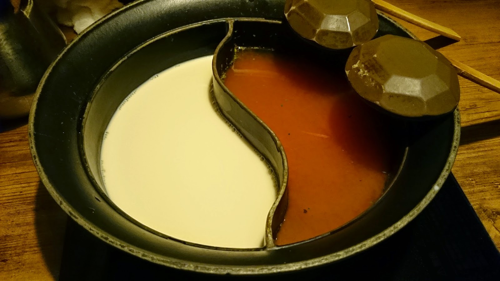 蕃茄湯和豆乳湯。湯底味濃又不肥膩,減低罪惡感。