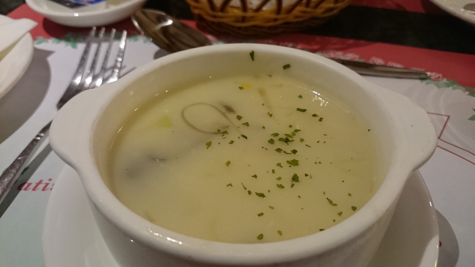 忌廉湯濃稠適中,內裡磨菇、火腿絲、雞絲和洋蔥絲等等的湯料十足,感覺一絲不苟。
