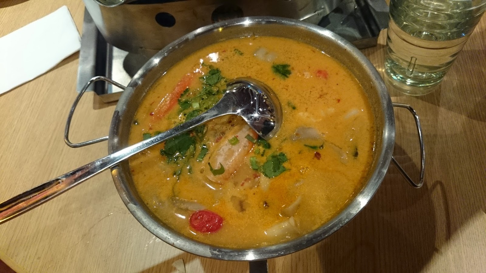 雖然菜牌內標示這道菜值兩隻辣椒 (所有菜式以沒有辣椒,一隻辣椒,和兩隻辣椒而分),但這個冬陰公卻一點辣味都沒有,吃下去只有酸味....有點名不副實吧!