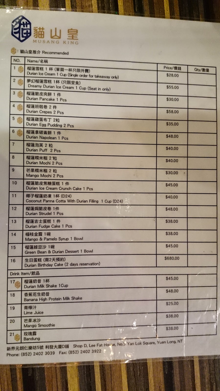 這晚我們到了元朗的貓山皇,顧名思義,當然是吃榴槤的啦!
