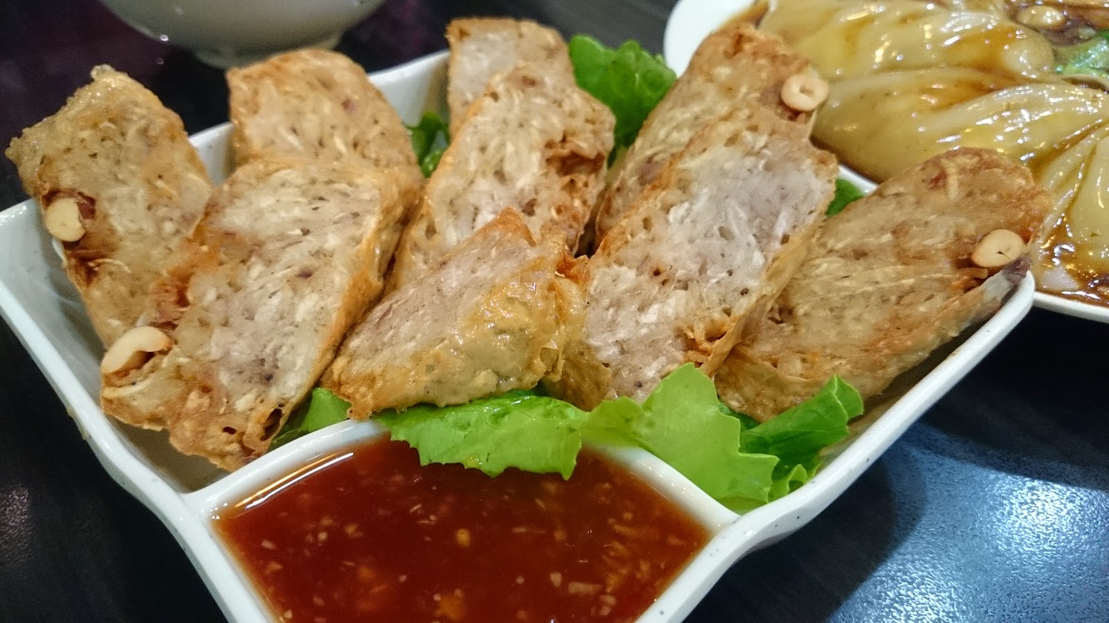 芋頭被腐皮包著再炸,新鮮炸出來不太油,而且十分香脆。芋頭加上花生,味道配襯。