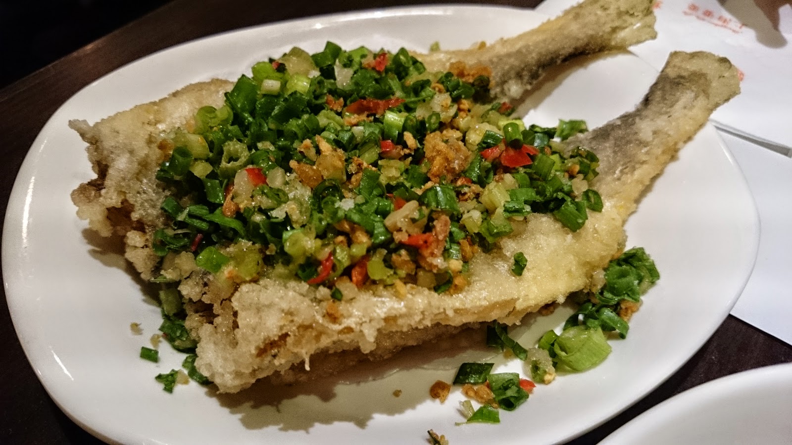 小黃魚炸得香脆化骨,上面鋪上大量蔥花,但配起來吃便太咸了。
