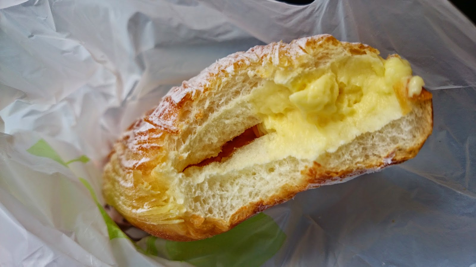再吃下去,吃到了吉士餡料,可惜...怎麼只有一半?!!!!!