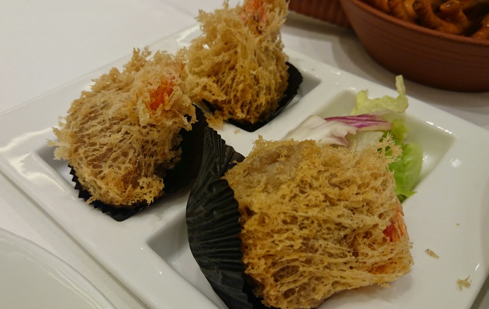 芋蓉包起鳳尾蝦,然後酥炸,雖然炸過,但不油膩。