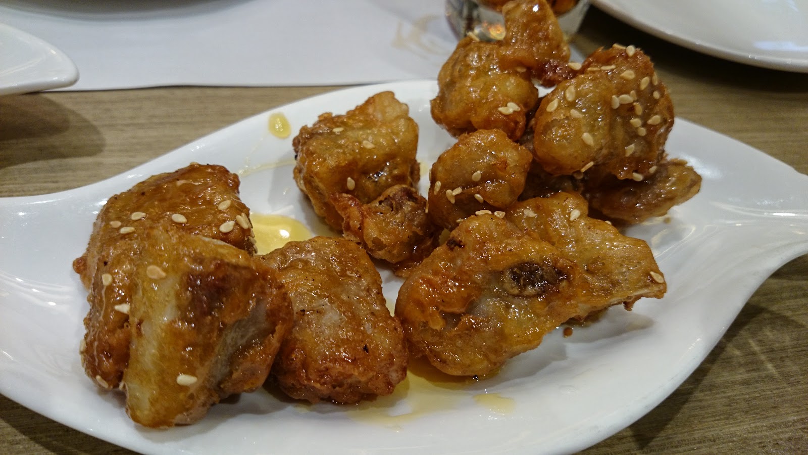 先把排骨炸香,再加上糖漿快炒,新鮮煮好就上菜,吃起來排骨仍很脆,酟上糖漿更減去油膩感。鹽香脆皮乳鴿 ($58)
