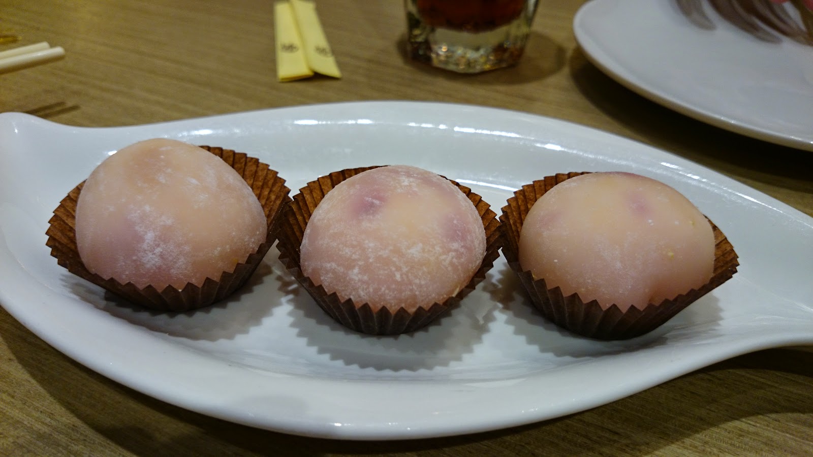 梅紅色的外皮軟而煙韌,內餡有芒果和士多啤梨,十分適合夏天吃。