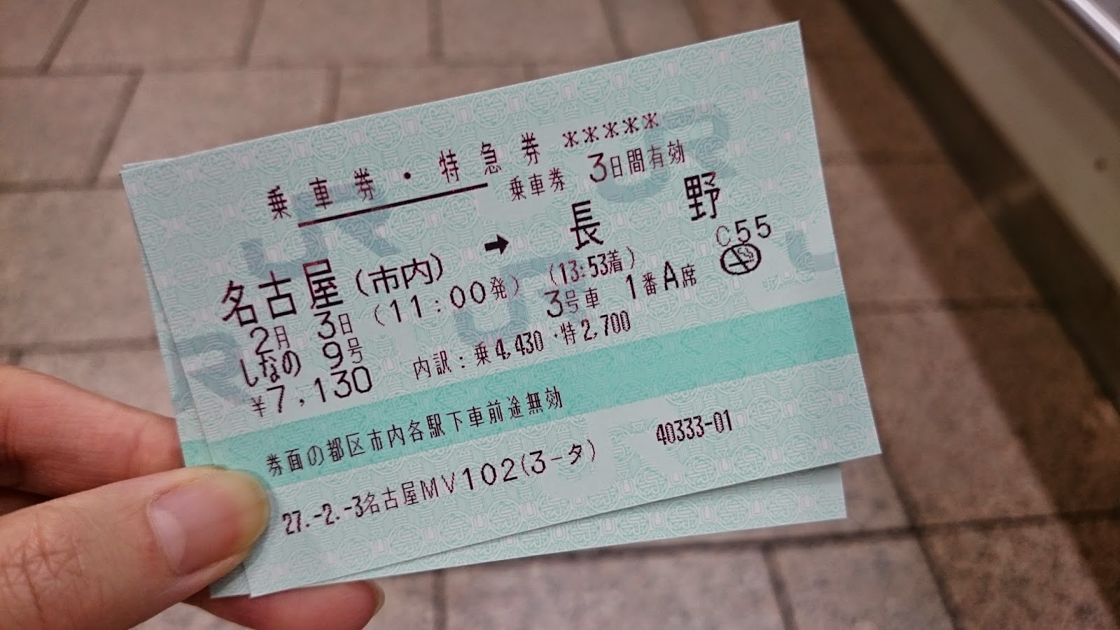由名古屋坐到長野縣的JR車票,價值¥7130一張…(大哭)。