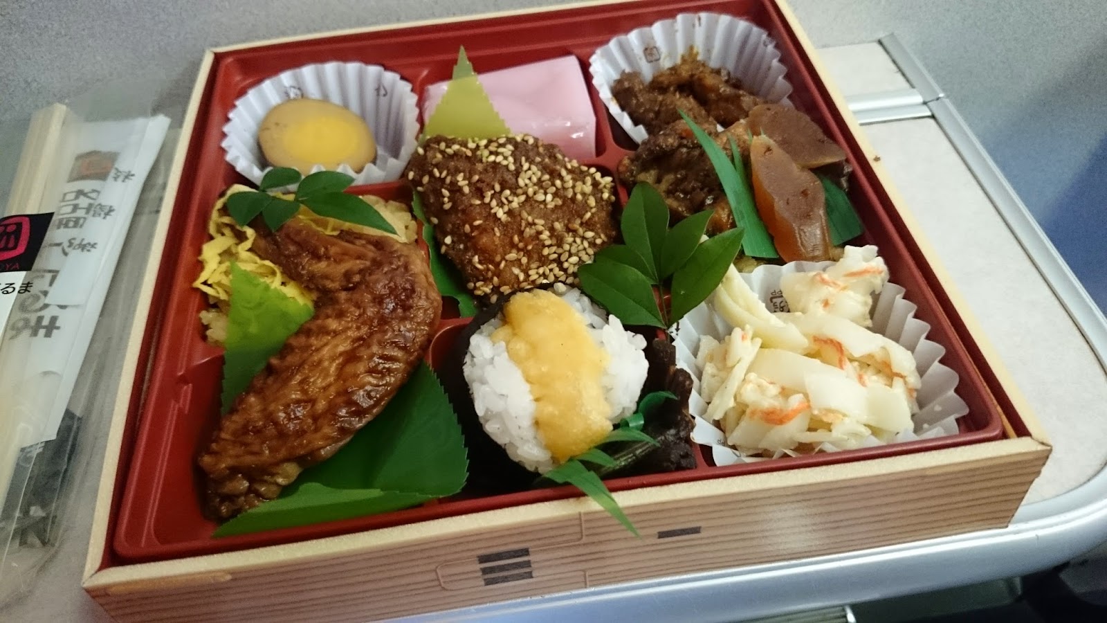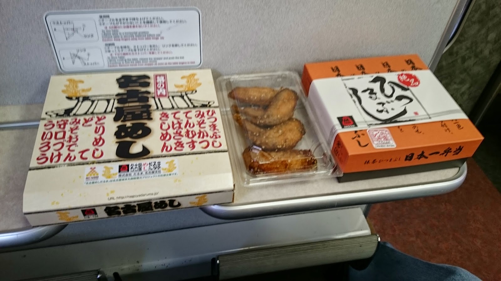 上了車準備開餐,日本很多長途鐵路都會在座位上加上一張摺合式的小桌,方便乘客吃便當。相信大家都會有公德心,不會弄污車箱吧。