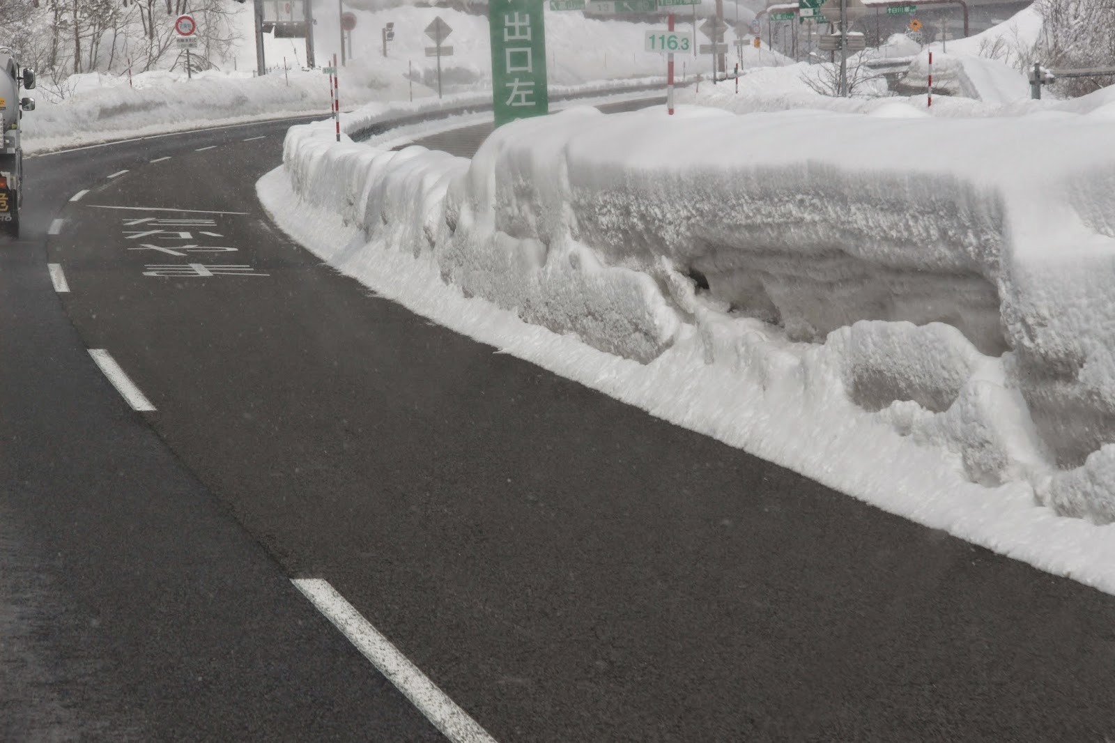 或許每天都有剷雪車開路,路面乾爽,但兩旁則堆起了雪牆。