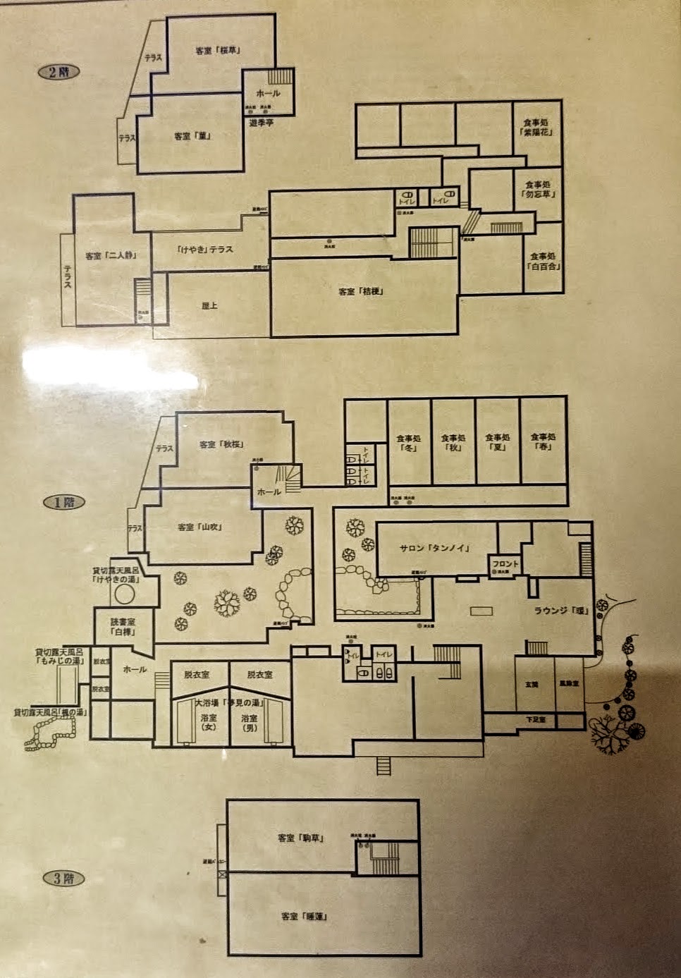 這是「湯宿せきや」的Floor plan,這裡3層高,只有8間客房。