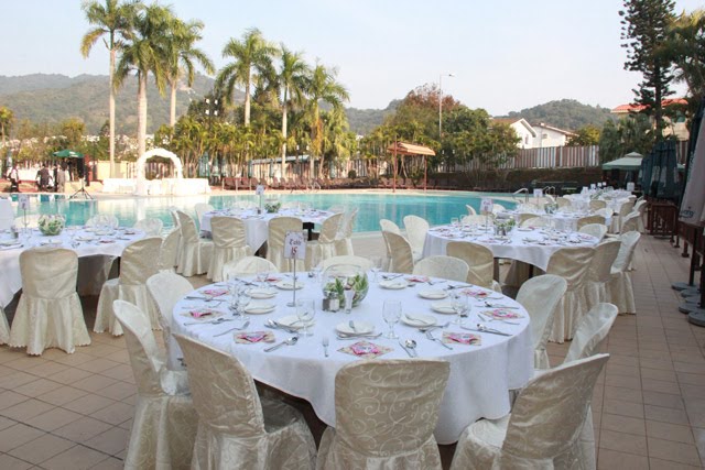這裡的戶外婚禮就是pool side wedding banquet,地方較大,相信能容納40圍。