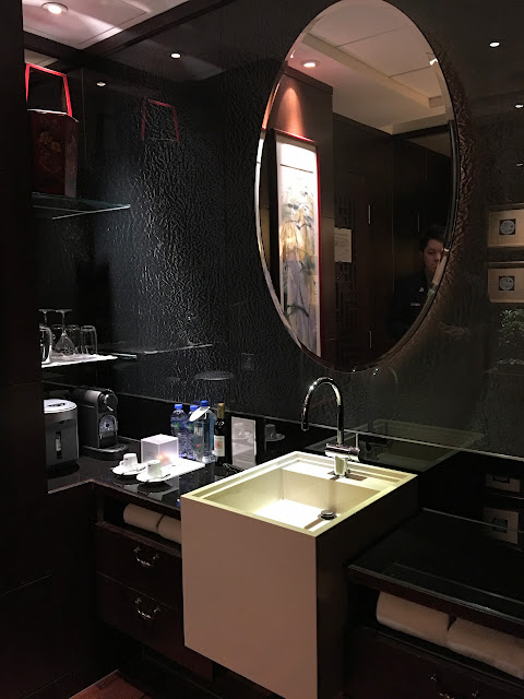 其實Chuan Suite一共有3款,但Infinity就是比較適合出門用途的那種啦!Chuan Suite位於酒店的40/F,一出電梯,全層都走中國風,燈光較暗,而且有特別香味,經理話是因為Chuan Suite是給客人做Spa用,所以無論燈光或是氣味,會配合了這種relax的風格。