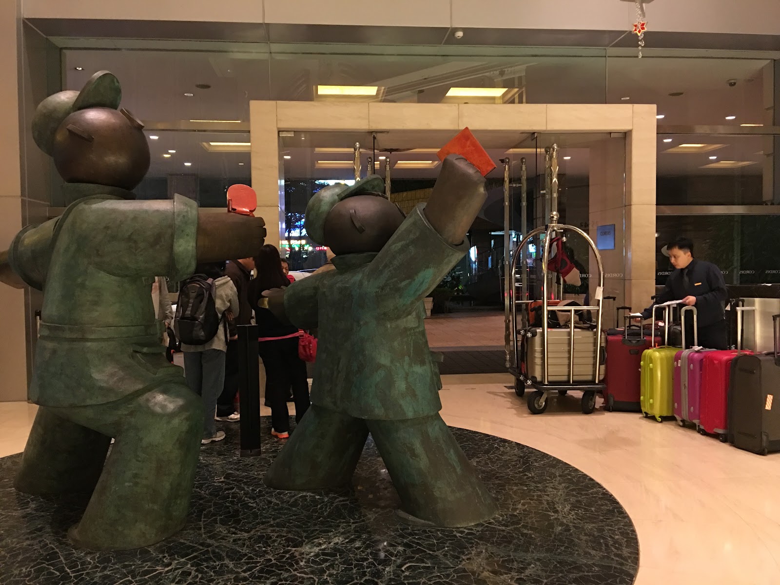 朗豪酒店lobby位置的雕塑實在...染太紅了吧....。